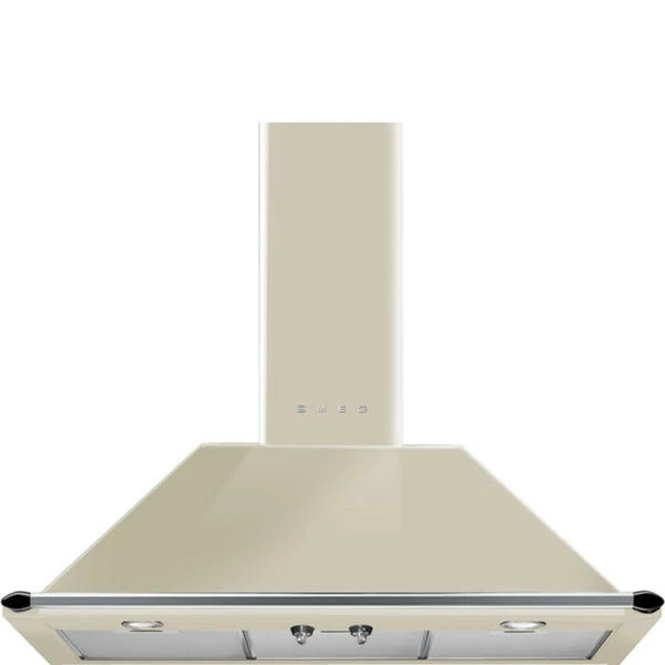 Smeg KT90PE est une hotte murale trapézoïdale de couleur crème avec des